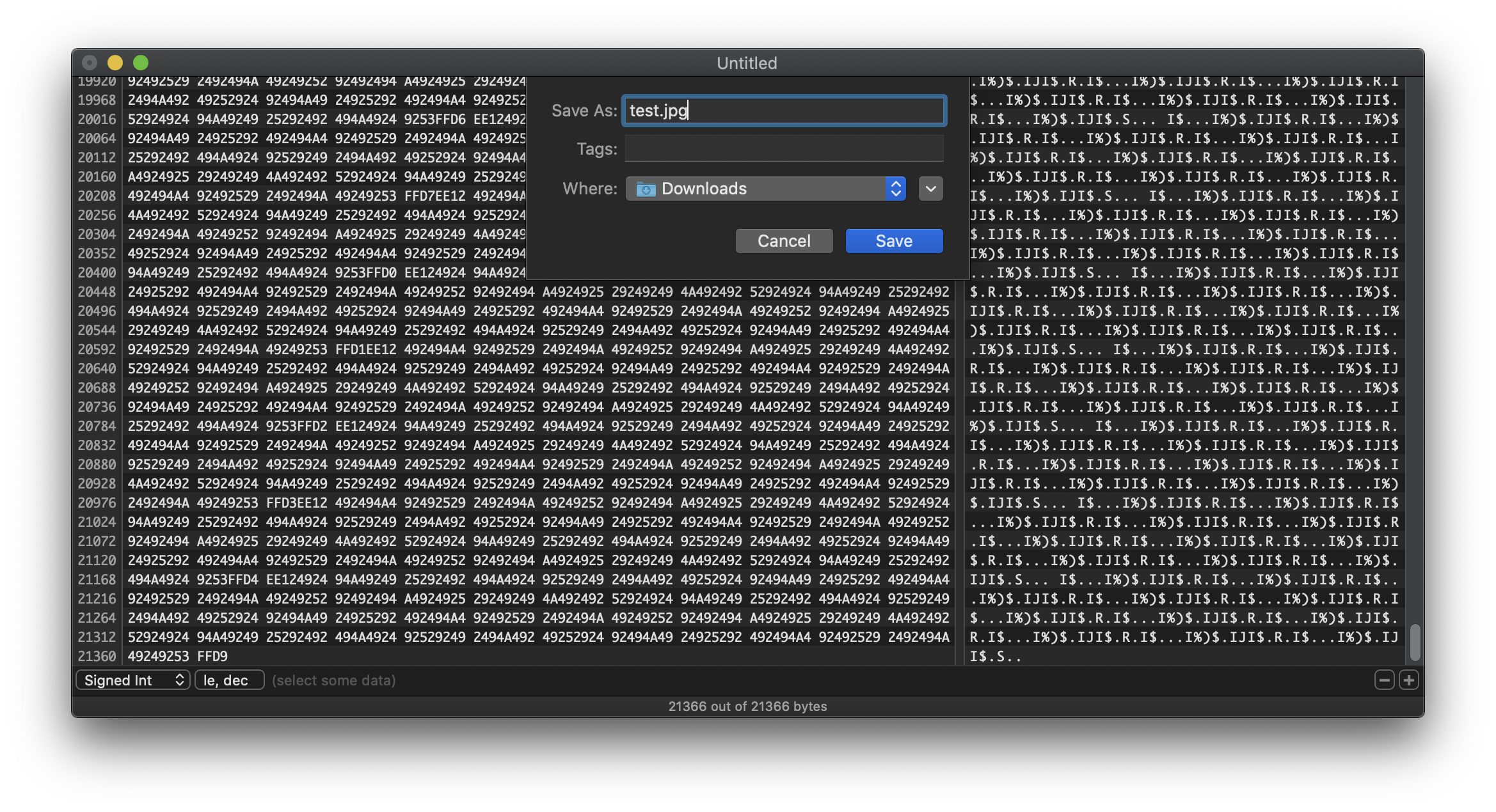JPEG 헤더에서 푸터까지 긁은 다음, 새로운 파일로 만들었다.