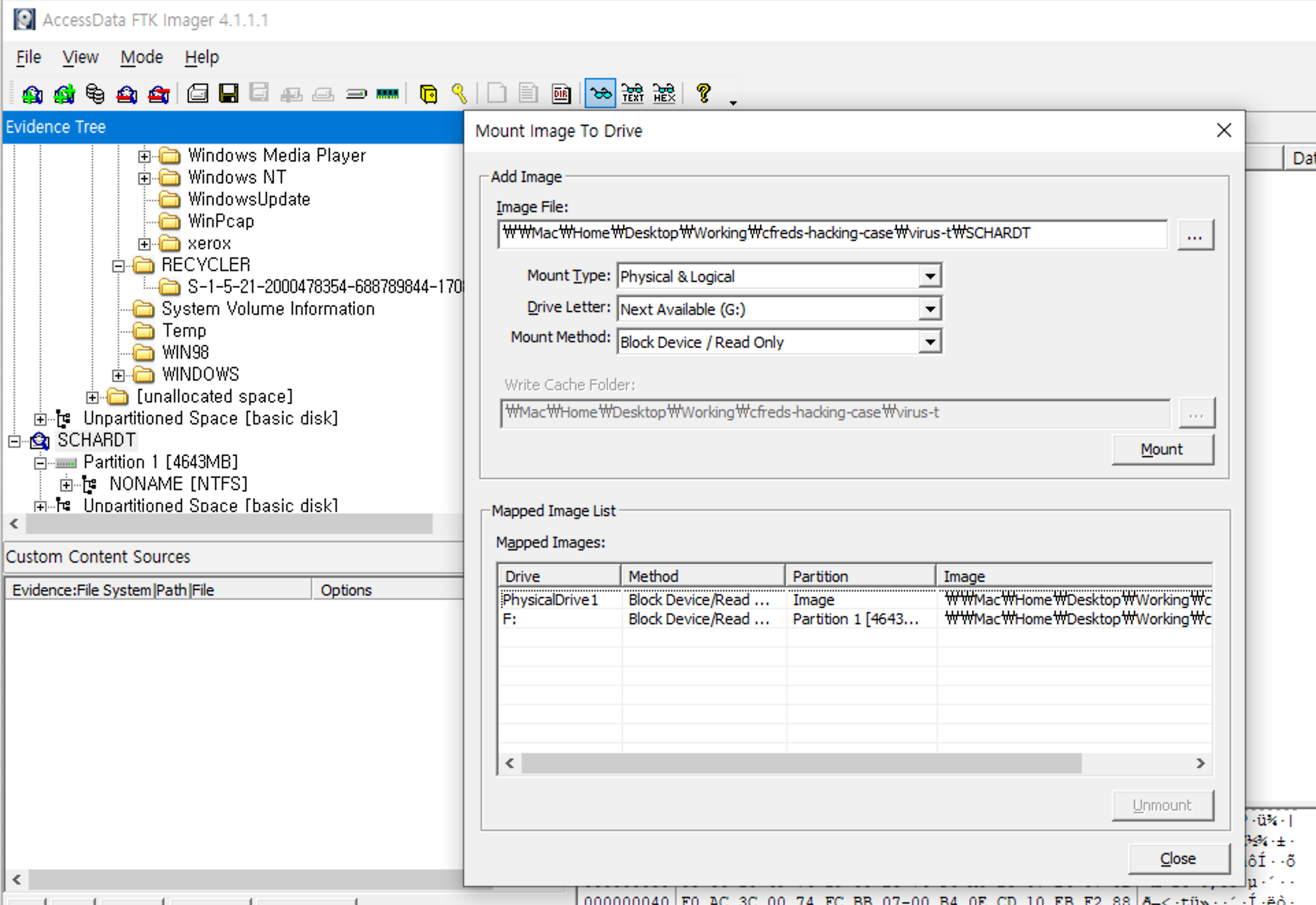 파일이 정말로 삭제된 (Wipeing | Del) 경우가 아니기에, FTK imager 및 카빙 툴을 통해,