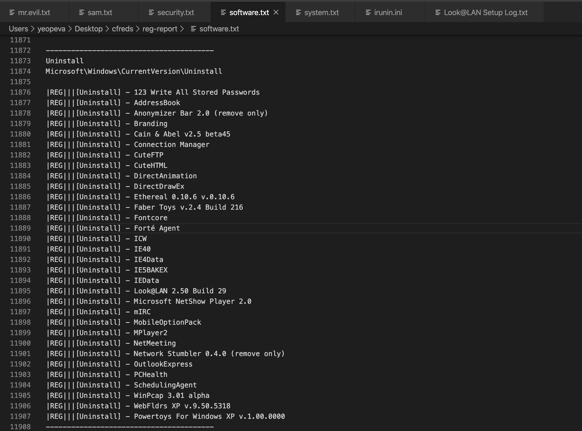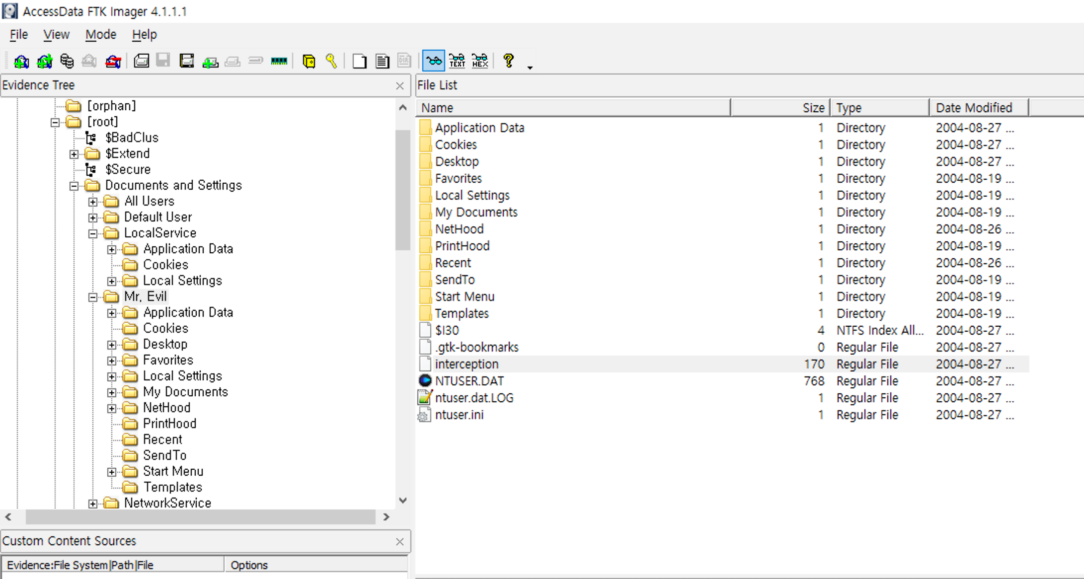 4 2004-08-27 15:29:58 No 8460800 C:\Documents and Settings\Mr. Evil\Desktop\ethereal-setup-0.10.6.exe