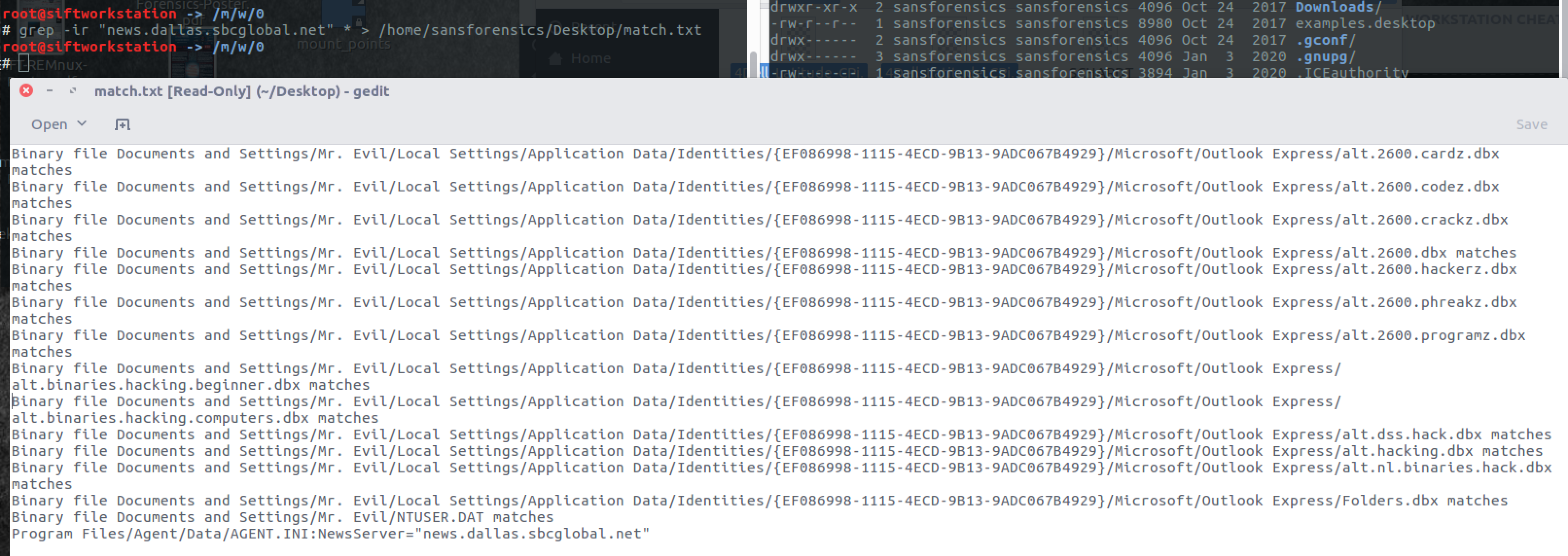grep -Elrch ""\w+([.-]\w)@\w+([.-]\w)*.\w{2,4}" "Documents and Settings\Mr . Evil\Local Settings\Temporary Internet Files\Content . IE5\