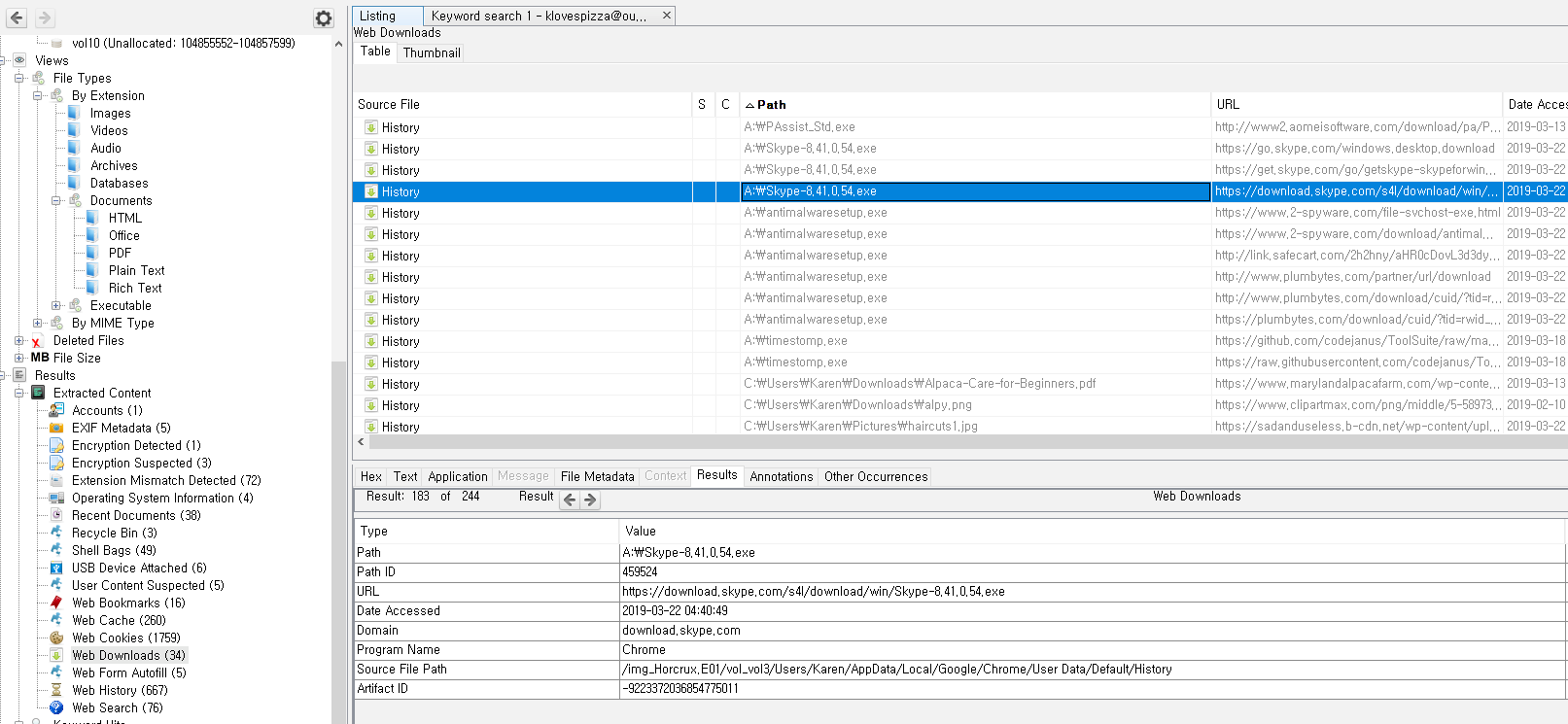 autospy | web 아티팩트를 통해, 확인할 수 있었습니다.