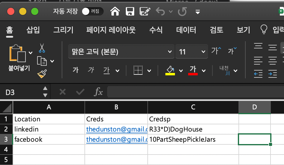 그 뒤, 엑셀 파일로 저장하여, 파일을 열어보니