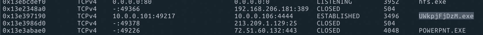 해당 프로세스 네트워크 정보 (netscan) 결과 값을 통해 flag를 확인할 수 있었습니다.
