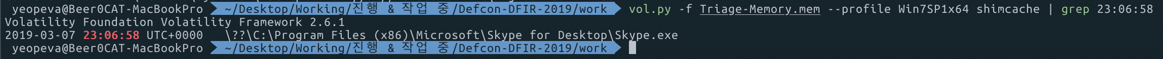Shim Cache 정보를 volatility를 통해, 출력하고, 해당 값에서 grep을 이용해 확인하면..