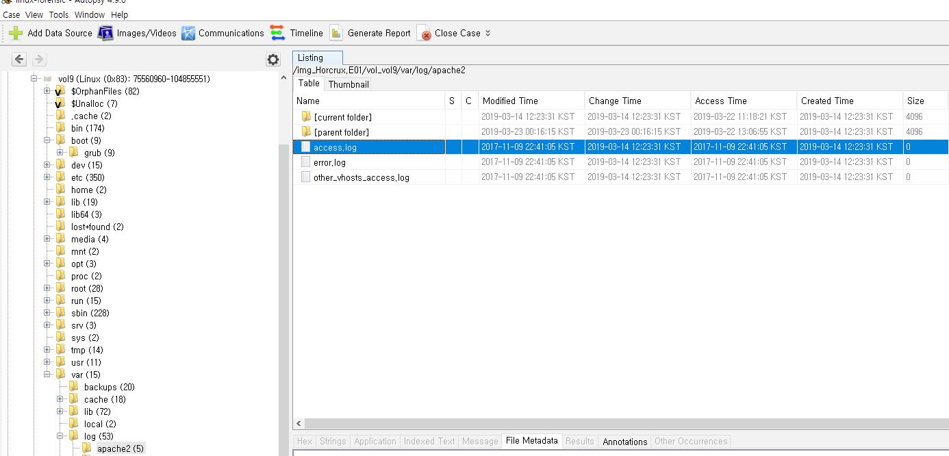 autospy를 사용해, access.log를 뽑아냈습니다.
