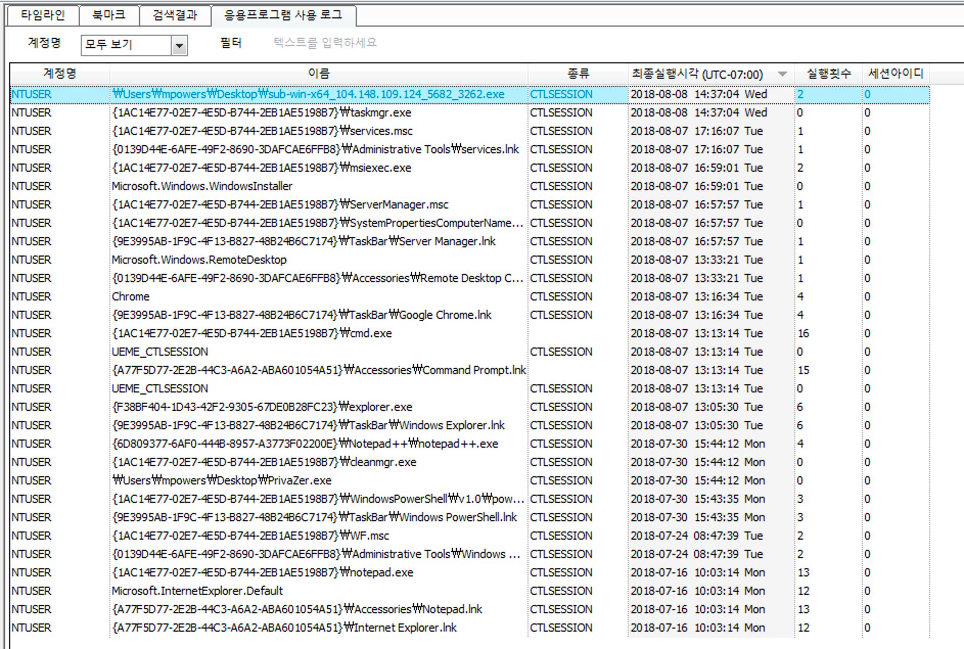 NTUSER.dat | REGA, 응용프로그램 사용 로그