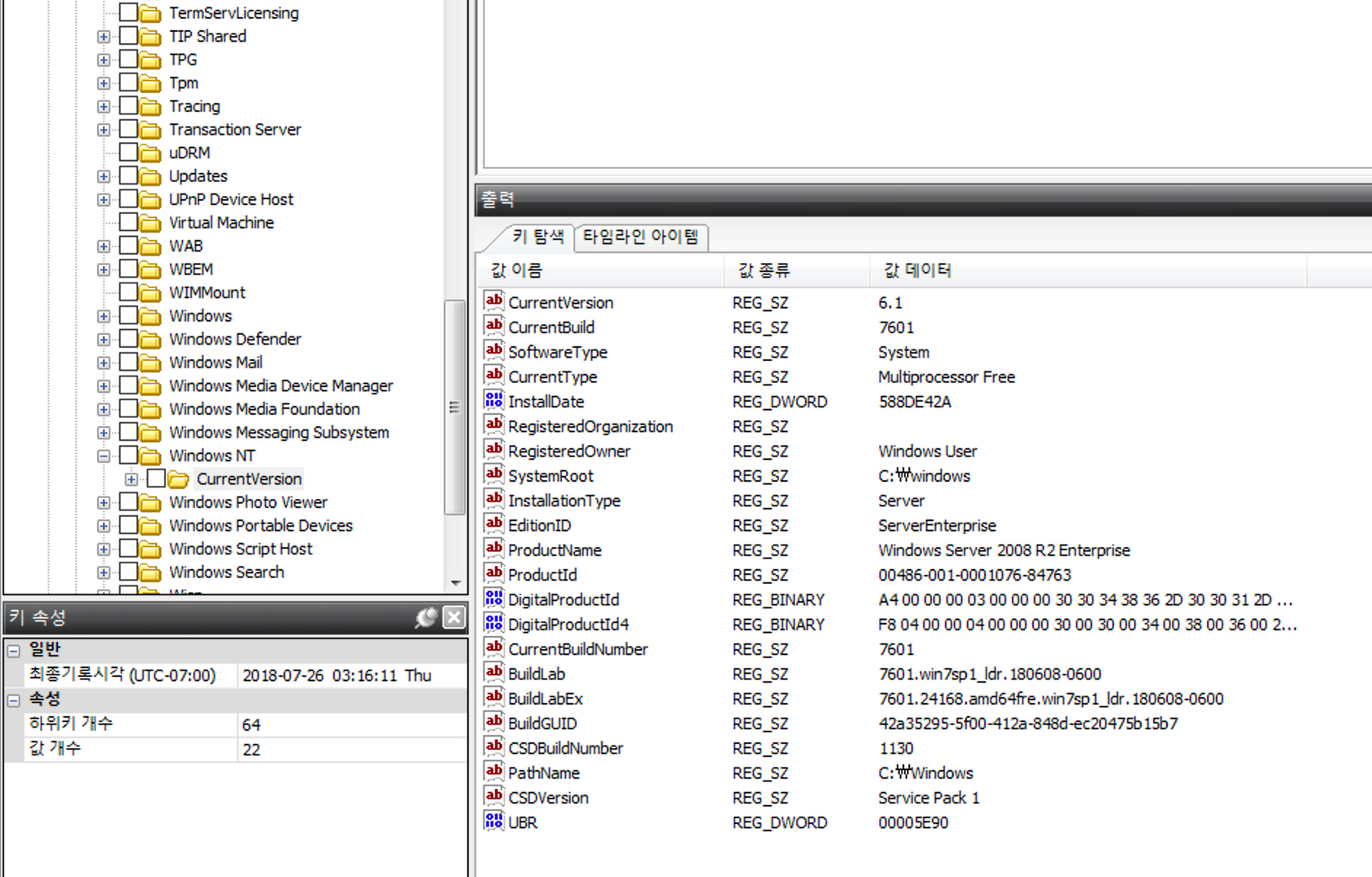 레지스트리 [Rega 혹은 Registry Explorer]를 통해, SYSTEM 레지스트리 상의