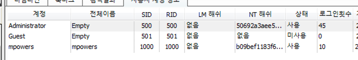 SAM 레지스트리 | REGA, 사용자 계정 정보 (SID)