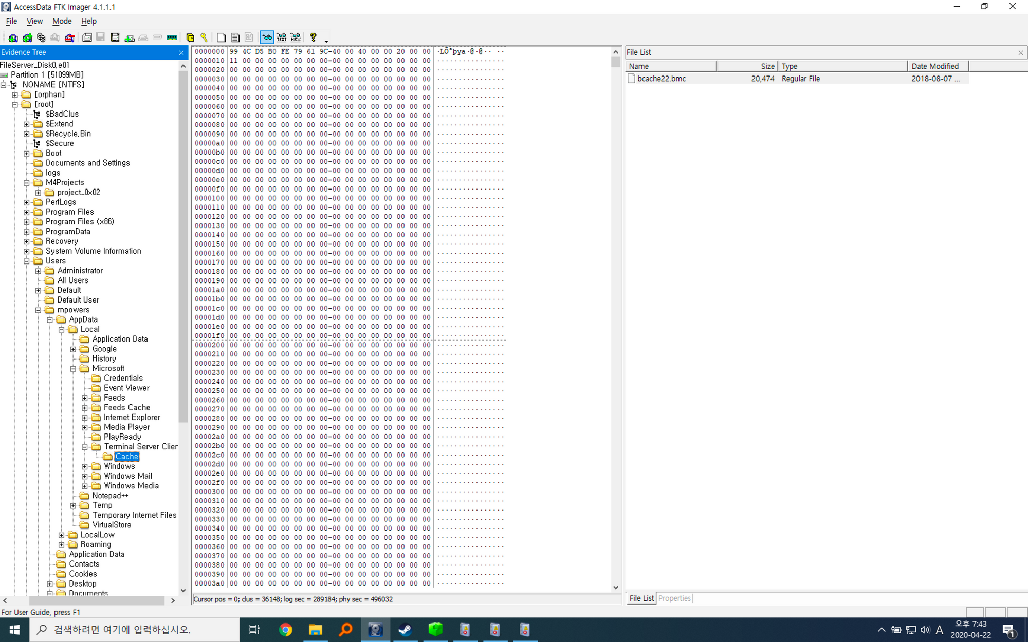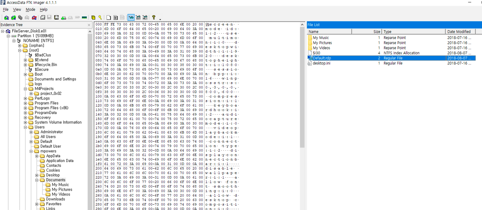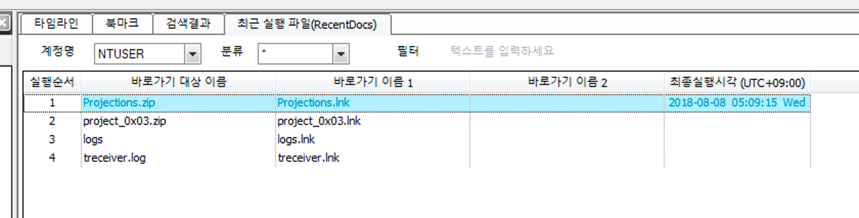 RDP 캐쉬 부분을 보다보면, 레지스트리 파일 2개를 드래그한 흔적을 확인할 수 있습니다.