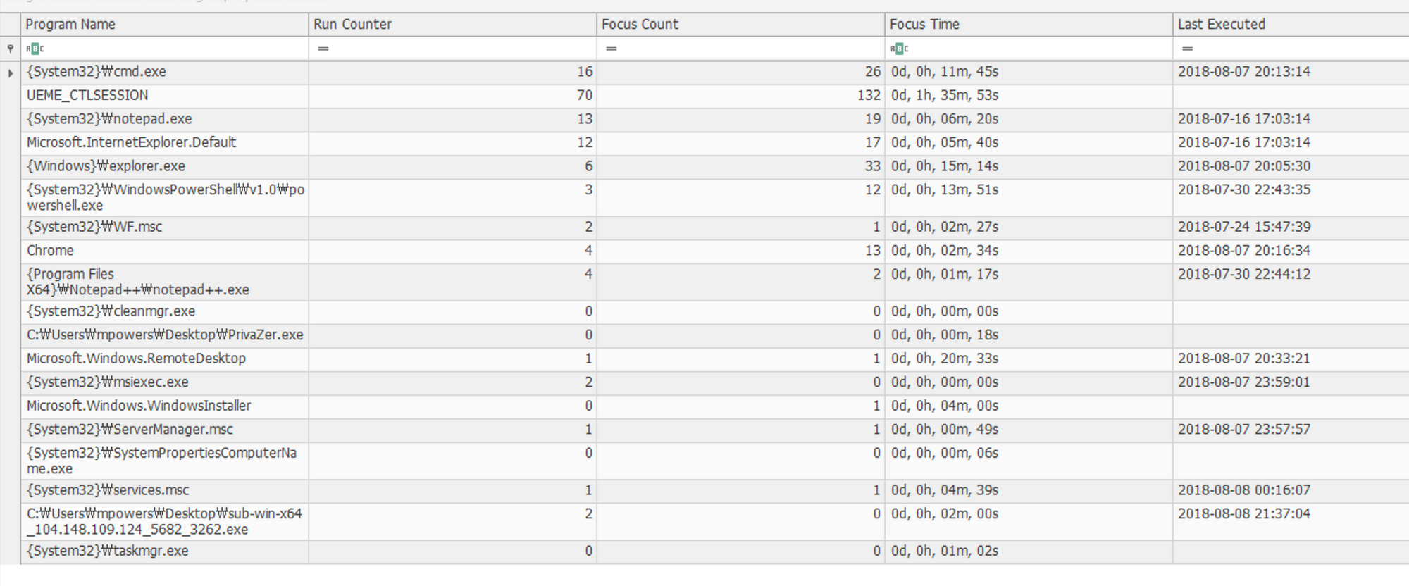 NTUSER.DAT\Software\Microsoft\Windows\CurrentVersion\Explorer\UserAssist\~~\Count