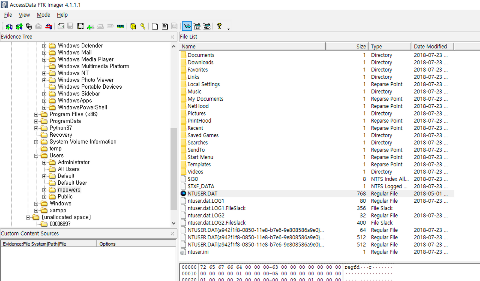 Users/mpowers/NTUSER.DAT을 확인하고, Export 한 다음.