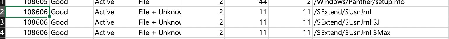 먼저 $MFT 결과에서, $UsnJrnl을 검색해, MFT Entry 번호를 알아낸 다음.