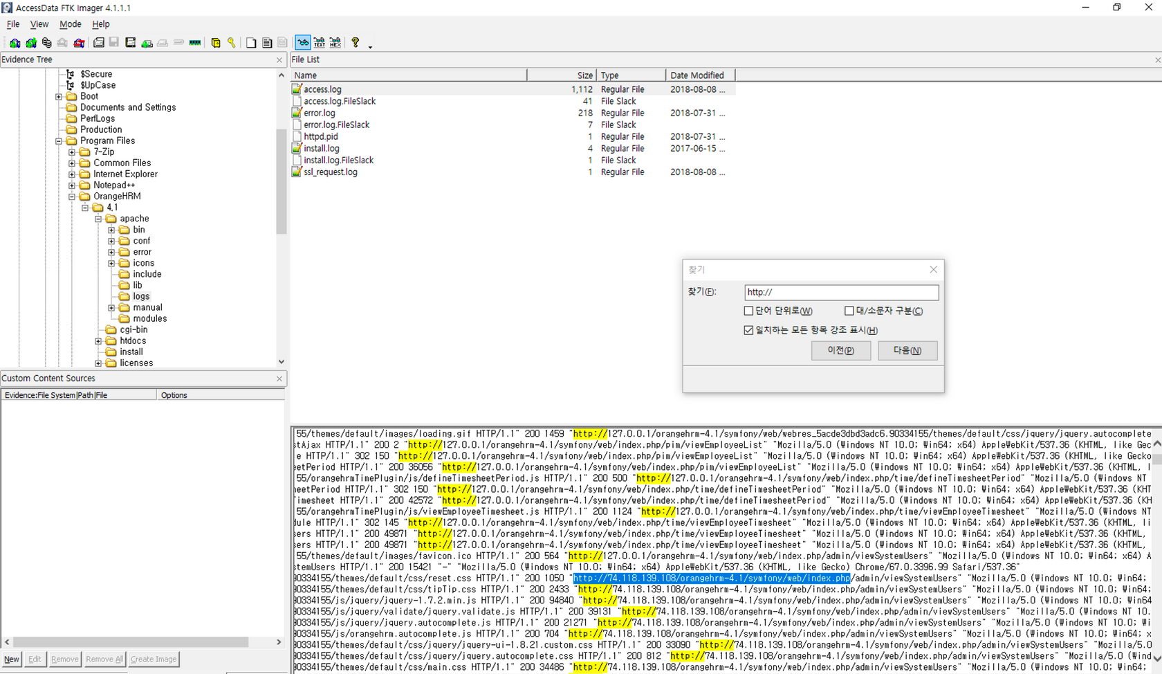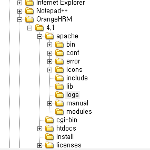 아까 찾은 OrangeHRM에서 좀 더 상세히 확인해보면, apache 폴더가 별도로 존재하는 것을 알 수 있고.