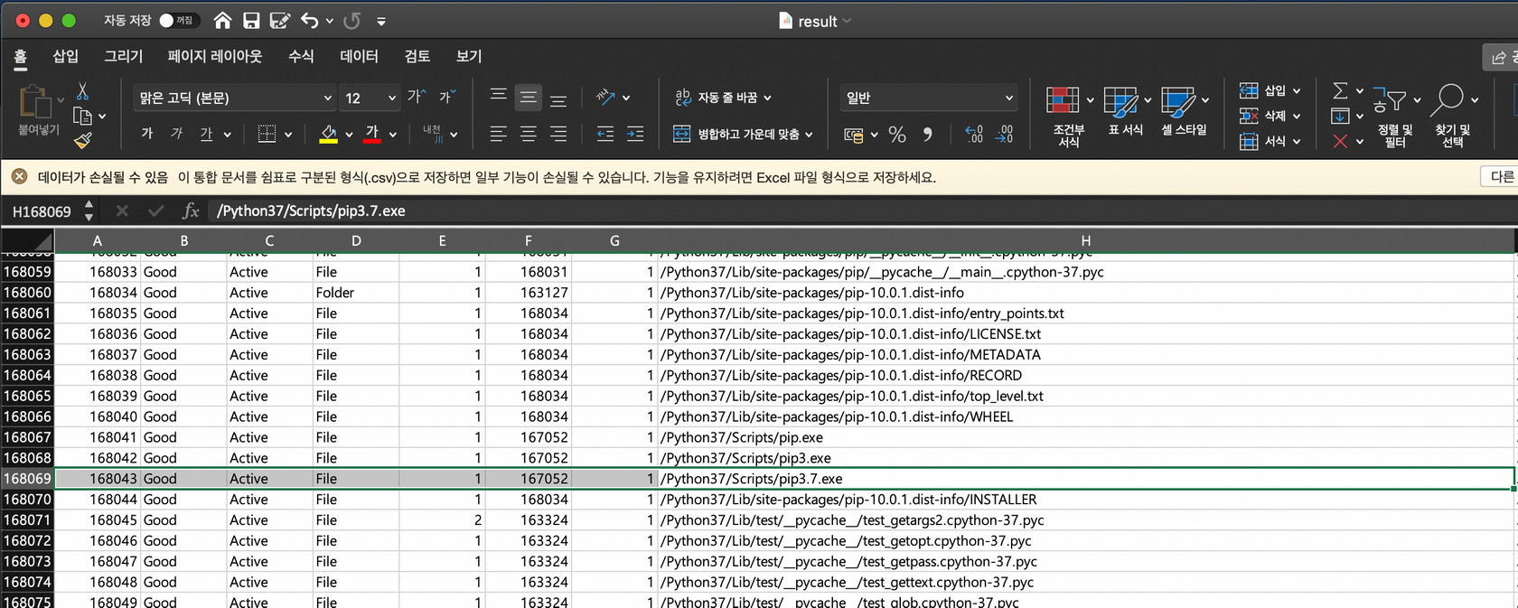MFT 검색 결과에서 체크 → pip3.7.exe 확인