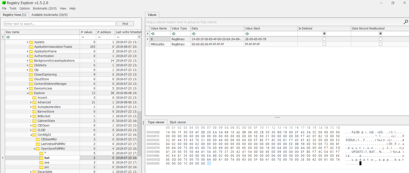 OpenSavePidMRU에서 bat 파일을 체크해보면, 경로를 확인할 수 있고.