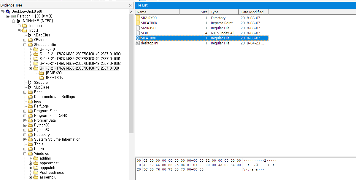 ftk imager를 통해, 휴지통에서 $IFATB0K | C:\vss를 확인할 수 있었습니다.