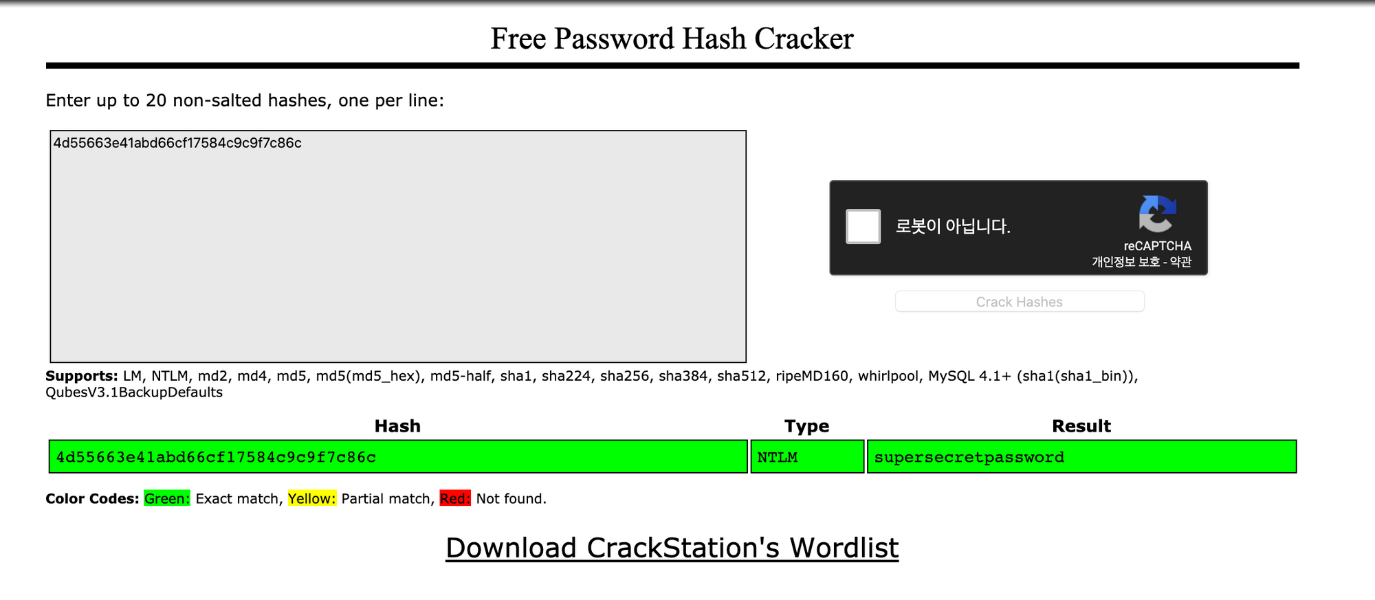 CrackStation을 통해 hash를 깨고, 패스워드를 확인할 수 있었습니다.