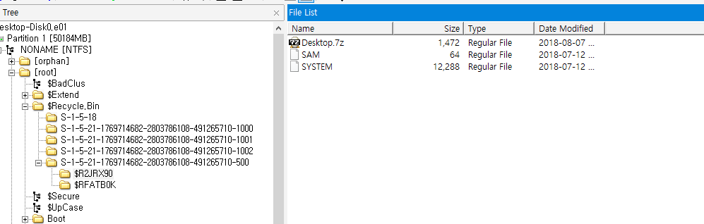$R2JRX90 → SAM, SYSTEM 레지스트리 사본 및 Desktop.7z 확인 가능