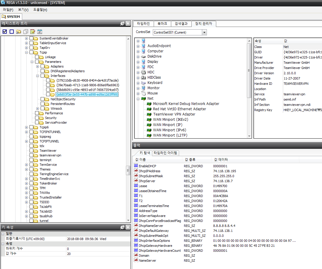 FTK imager를 이용해, 레지스트리를 추출하고, 하단 경로에서 네트워크 정보를 확인했습니다.
