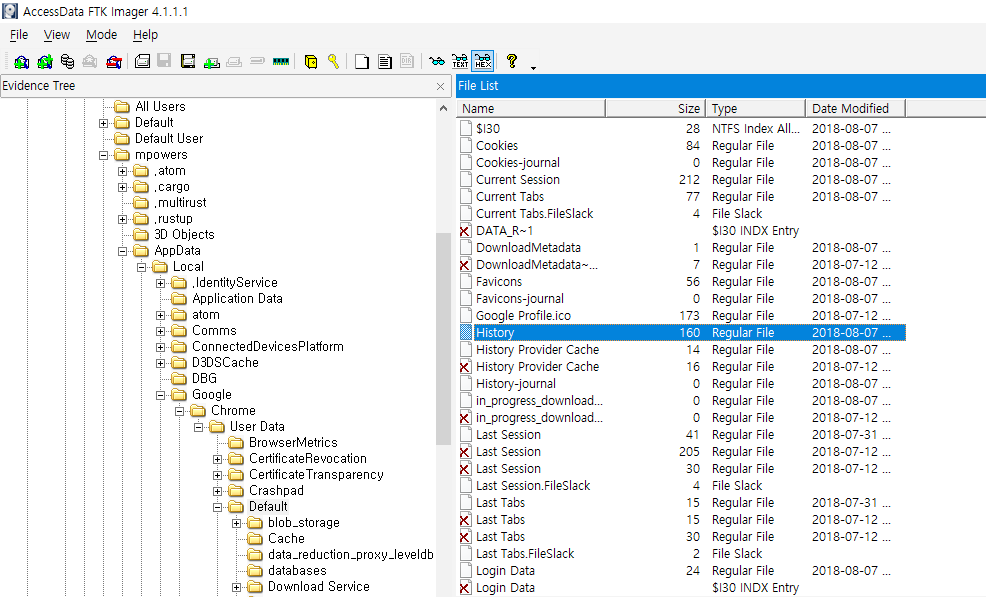 Chrome History 파일 추출