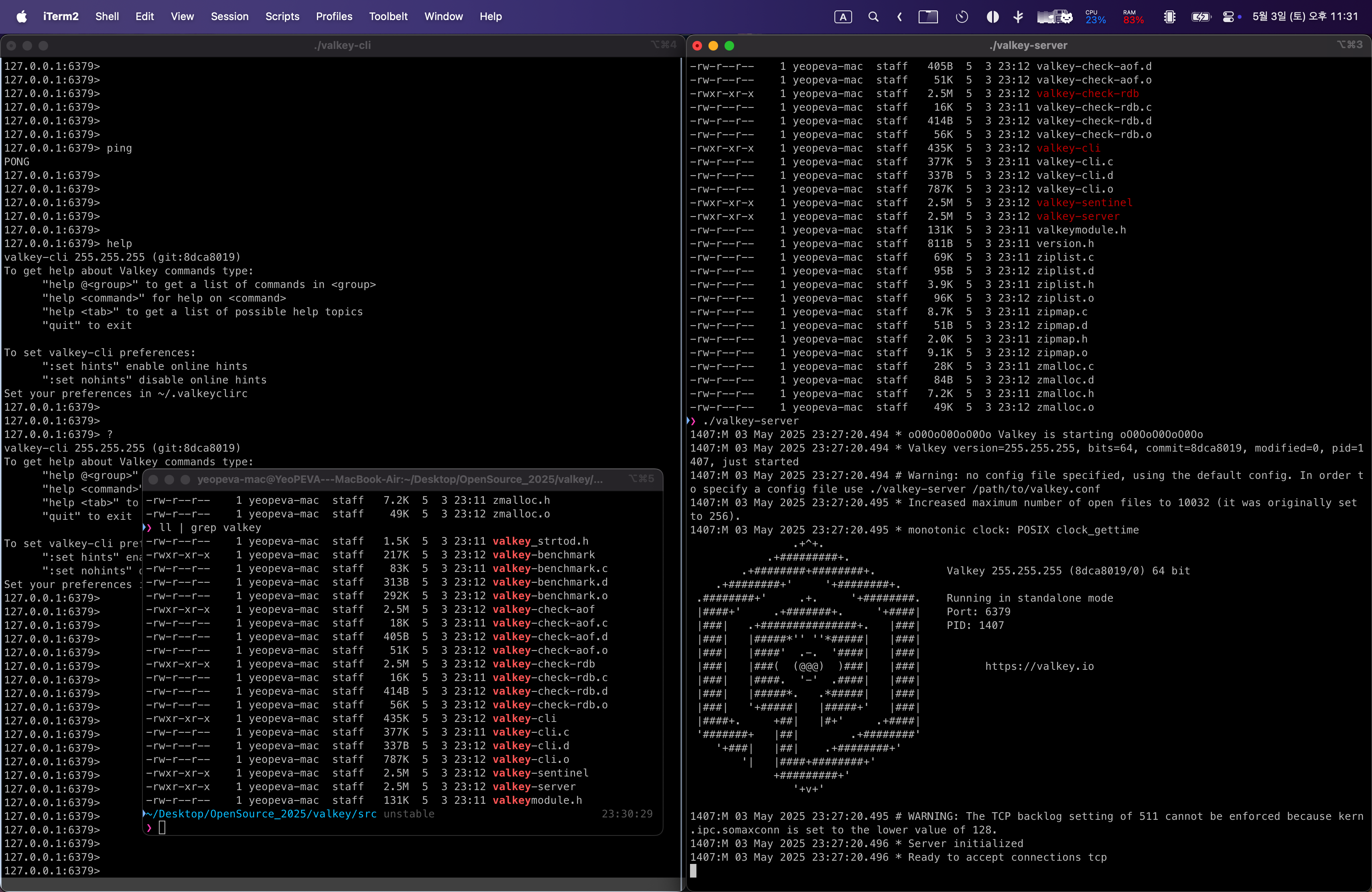 그 후, src 폴더 내에 존재하는 valkey-server & valkey-cli를 통해 Valkey에 접근할 수 있습니다.