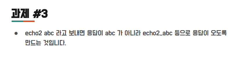 echo2 abc 명령어를 입력하고, 실행하면 응답으로 echo2_abc와 같은 응답을 반환하는 것이 목표인 과제였습니다.